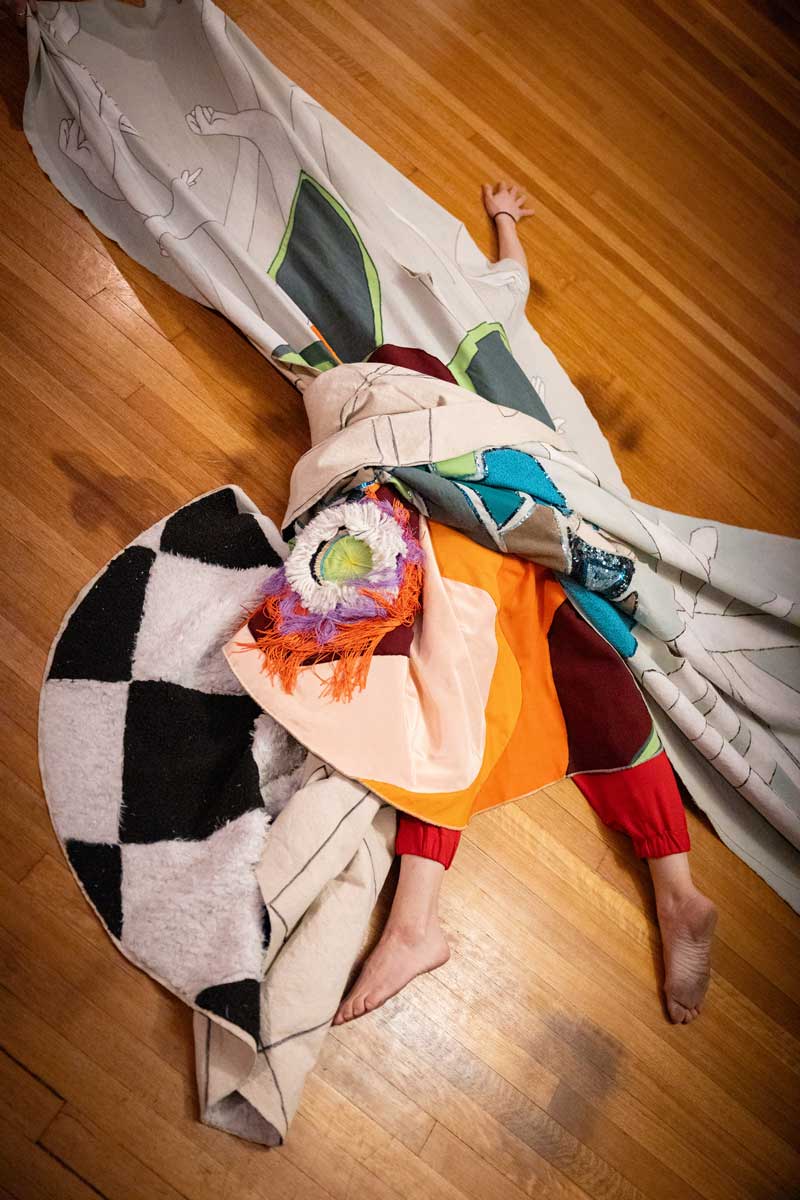 ROOMS at Gunder offers audiences an experimental dance performance incorporating movement, film, audio, personal object, and fabric. Built from a process grounded in care and comfort, ROOMS features improvised and choreographed sequences that prioritize being spontaneous and present. Each performance immerses audiences in a sensorial landscape of our childhood memories, familial histories, and domestic spaces.